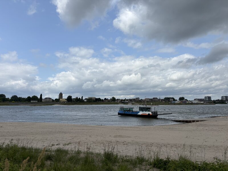 Vanaf de H. Barbarakerk wandel je ca. 10 minuten over de Rooijsestraat, om vervolgens scherp rechtsaf te slaan en via de Waaldijk richting de Waal te lopen. Over het pad tussen de Vonkerplas en de grote rivier bereiken we de uiterwaarden, waar we vlak langs het water wandelen.. Aan de overzijde van de Waal hebben we zicht op Tiel.