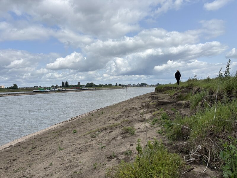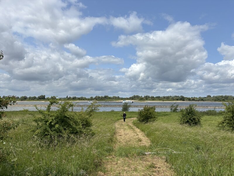 Vanaf de H. Barbarakerk wandel je ca. 10 minuten over de Rooijsestraat, om vervolgens scherp rechtsaf te slaan en via de Waaldijk richting de Waal te lopen. Over het pad tussen de Vonkerplas en de grote rivier bereiken we de uiterwaarden, waar we vlak langs het water wandelen.. Aan de overzijde van de Waal hebben we zicht op Tiel.